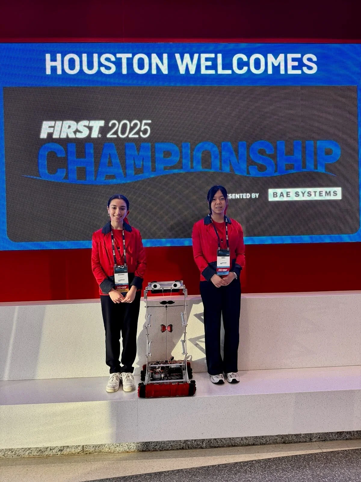 “Although our team did not place, I was really happy about even getting the chance to go to internationals. The last time team 537 went there was back in 2019, so it’s been quite a while. Plus, being in Houston meant that there was plenty to do and experience, whether it was robotics-related or not. It was intimidating to be on just one of the eight game fields there, especially once I realized how much it took to advance to the Einstein field (kinda like the playoffs). However, the chance to visit other teams was a nice way to cool off, and I even met a team there that gave me a lucky charm. An excellent way to end senior year.” – Derek Zhang (Team Captain, Drive team: alliance coach)