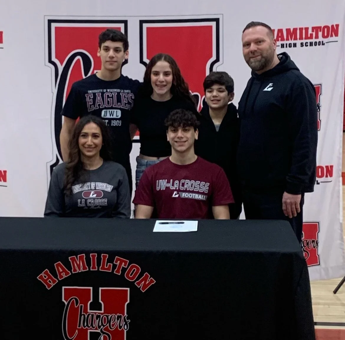 This year, Hamilton High School’s football team had a very successful run. Once again taking the title of GMC champions, the Chargers run came to an end after a tough match against Franklin deep in the playoffs. This season we had 30 seniors with 12 of them committing to several different colleges. Read on to see where each of them is going to further their football careers!